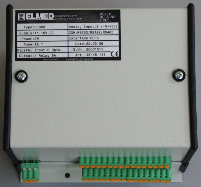 Das Mikrocontroller-Modul RES03 ist mit einem leistungsstarken 8-Bit Mikrocontroller der 80C51 Familie ausgestattet. Die Elektronik ist für den Einsatz im industriellen Umfeld entwickelt und ausgelegt. Die problemlose Montage in elektrischen Schaltschränken wird durch ein entsprechendes Gehäuse gewährleistet. Die Signale werden über industrielle Schraubklemmen, zuverlässig an die Elektronik angeschlossen, was eine sichere und dauerhafte Verbindung garantiert. Der Mikrocontroller ist frei programmierbar und bietet durch ausreichend Speicher und eine üppige Schnittstellenbestückung genug Flexibilität, um kundenspezifische Anwendungen realisieren zu können. Hierfür sind auf dem Modul auch verschiedene Ein- und Ausgangsstufen enthalten: Relaisausgänge, digitale und analoge Eingänge. Das RES03 ist mit einem GPRS-Modul bestückt, welches durch Einlegen einer Handy-SIM-Karte, über das Handy-Netz mit anderen Geräten kommunizieren kann.